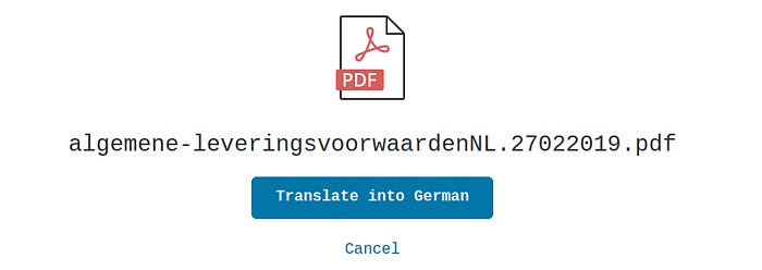 DeepL can translate entire documents: PDF, Word, and PowerPoint. Below is an example of a PDF-document in Dutch translated into German: