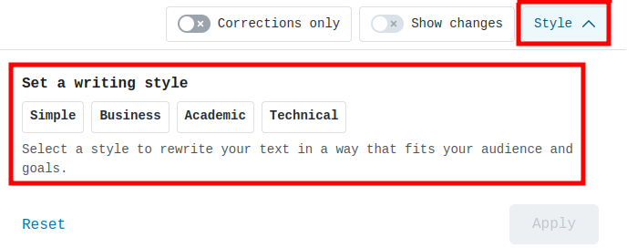 TIP: Select ‘Corrections only’ to correct mistakes, without re-phrasing words or sentences: