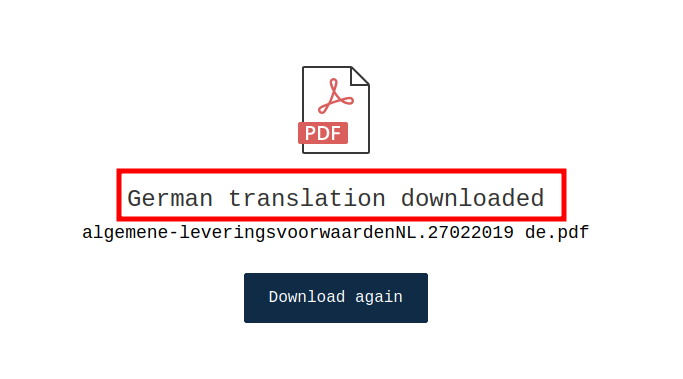 5. The translated document will download automatically; you can download it again by clicking on ‘Download again’: